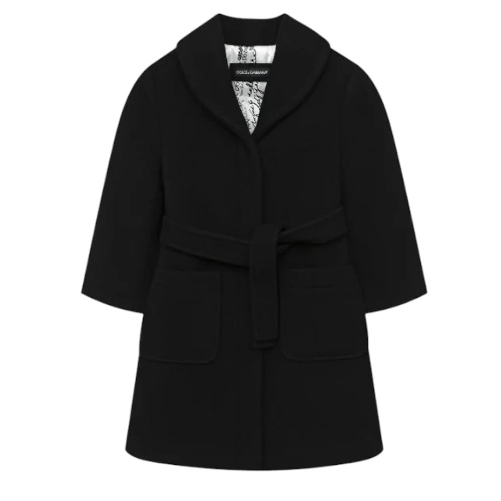 Dolce & Gabbana Cappotto nero in misto lana con cintura L54C01