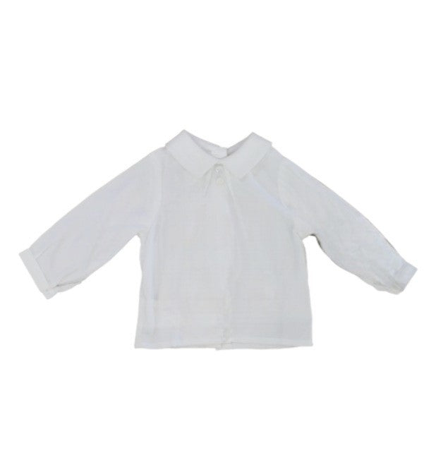 Camicia neonato a maniche lunghe con colletto classico. Chiusura posteriore con bottoni.