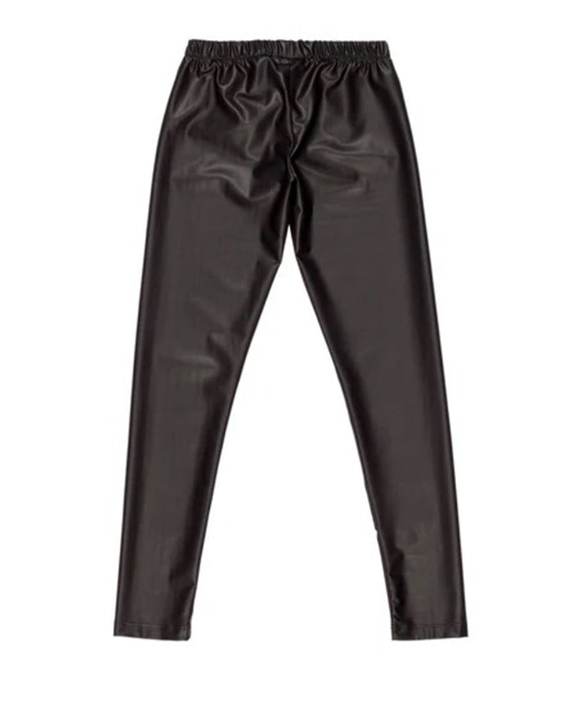 Leggings realizzati in tessuto effetto similpelle sottile con vita elasticizzata.
