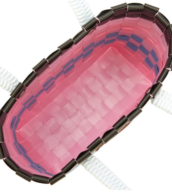 Borsa ad intreccio formata da un unico scomparto, due manici, logo applicato sulla parte anteriore.
