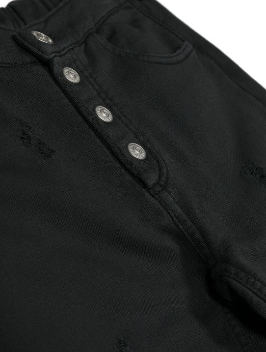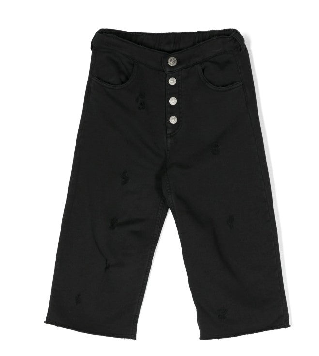 Pantalone in felpa di cotone, modello cinque tasche, effetto vintage, chiusura frontale con bottoni.