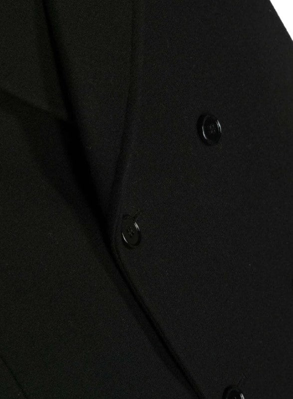 Smanicato in panno lungo da bambina, chiusura doppiopetto con bottoni, logo ricamato in tono sul davanti.