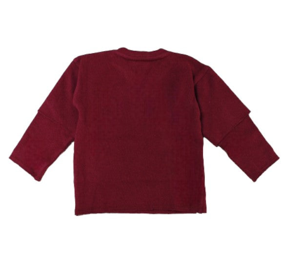 Maglia in misto lana, manica lunga, scollo a V, patch logo applicato in tono.
