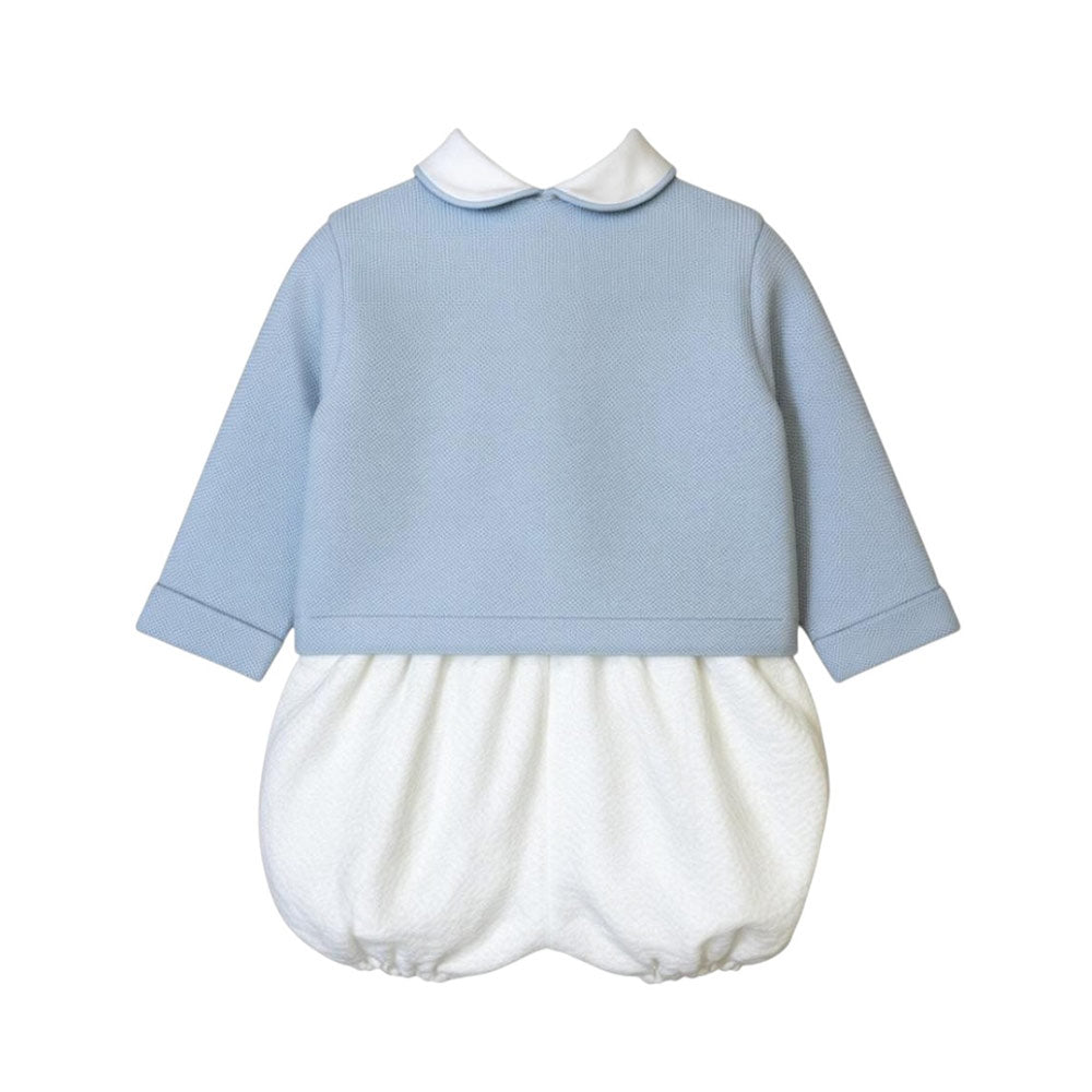 Completo 4 pezzi camicia con pieghe e papillon removibile cardigan con bottoncini e nodini sul davanti pantaloncino a culotte con bretelle