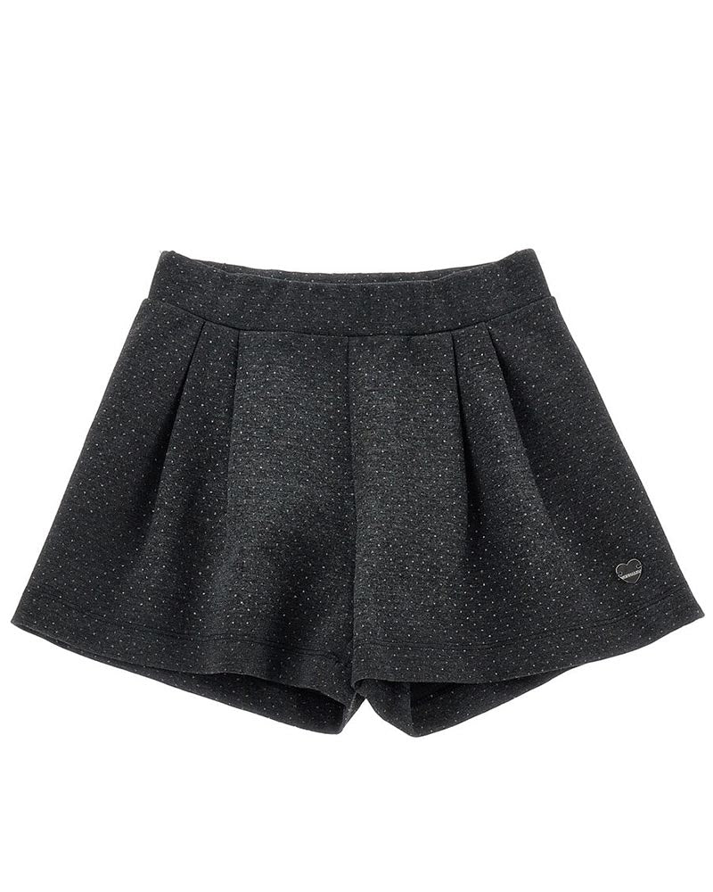 Shorts realizzati in tessuto punto Milano da bambina. Presentano vita elasticizzata, fantasia a pois glitter all-over e tasche laterali oblique.