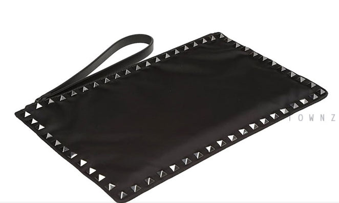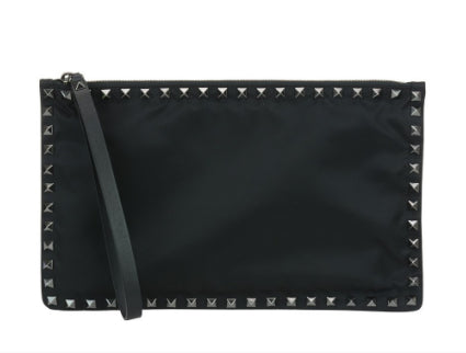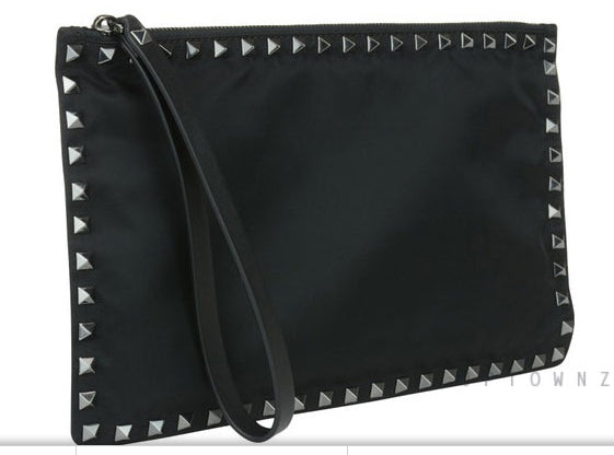 Pochette Valentino Garavani in tessuto nero con borchie.