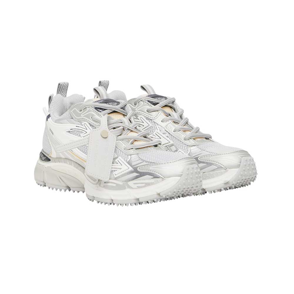 Le sneakers Off-White Be Right Back unisex combinano estetica da running e design versatile per un uso quotidiano e prestazioni elevate. Realizzate con inserti in mesh e pelle sintetica, garantiscono traspirabilità e resistenza. Il look distintivo è arricchito da molteplici loghi Off-White™ e dalla rivisitazione del celebre motivo Arrow, marcando uno stile contemporaneo e riconoscibile. Perfette per chi cerca funzionalità e carattere in un’unica calzatura.