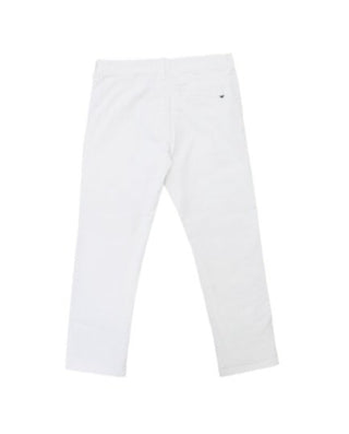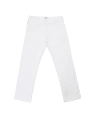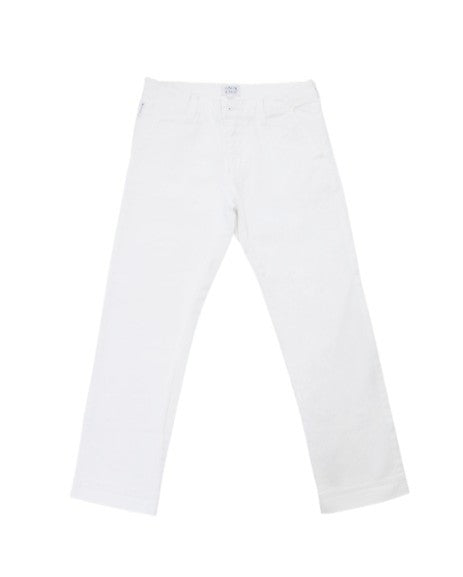 Pantalone tasca america, chiusura frontale con bottone e zip, logo applicato sul taschino posteriore.