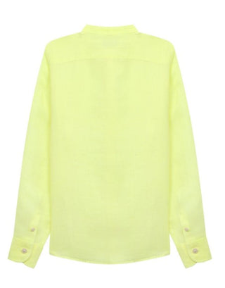 Camicia in lino con coletto alla coreana, chiusura frontale con bottoni.