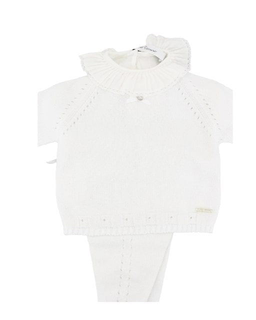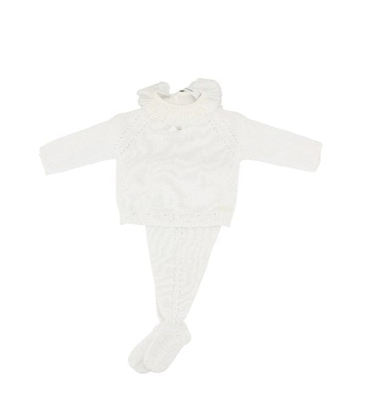 Tutina due pezzi Pili Carrera in filo bianco con camicina con colletto con rouces .