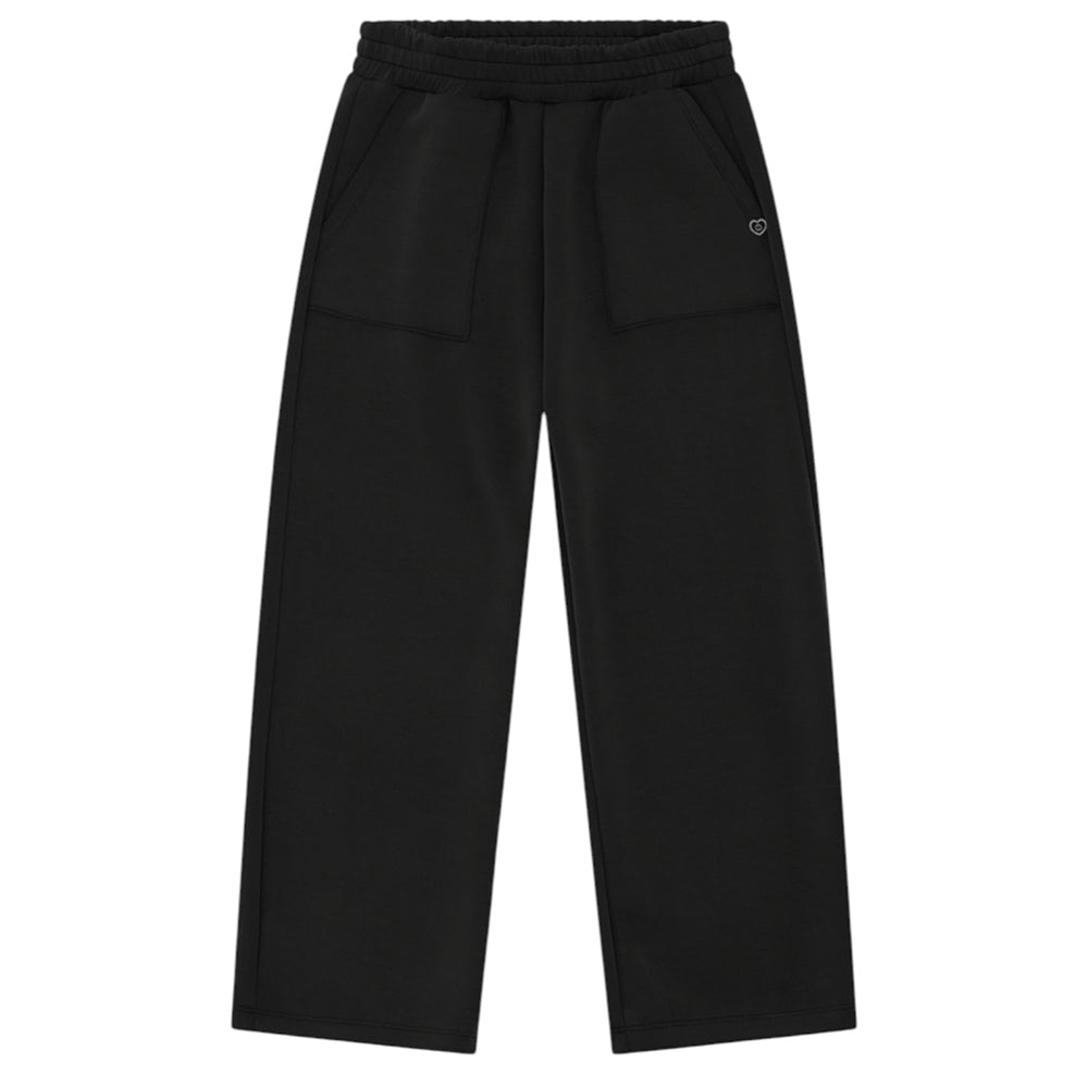 Pantaloni realizzati in felpa di cotone, caratterizzati da vita elasticizzata, due tasche applicate sul davanti, taglio dritto e placca logo in metallo sul davanti.