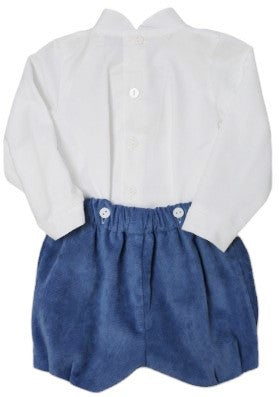 3 pezzi pantaloncino a culotta in velluto a costine camicia flanella in cotone con pizzo merletto sul davanti e papillon unito da bottoncini di madreperla