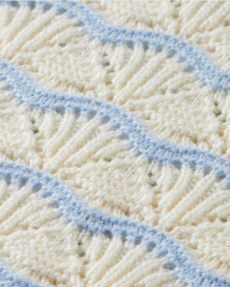 Maglia a polo in pointelle a righe da bambina. Presenta scollo a V, maniche lunghe e finiture a coste.