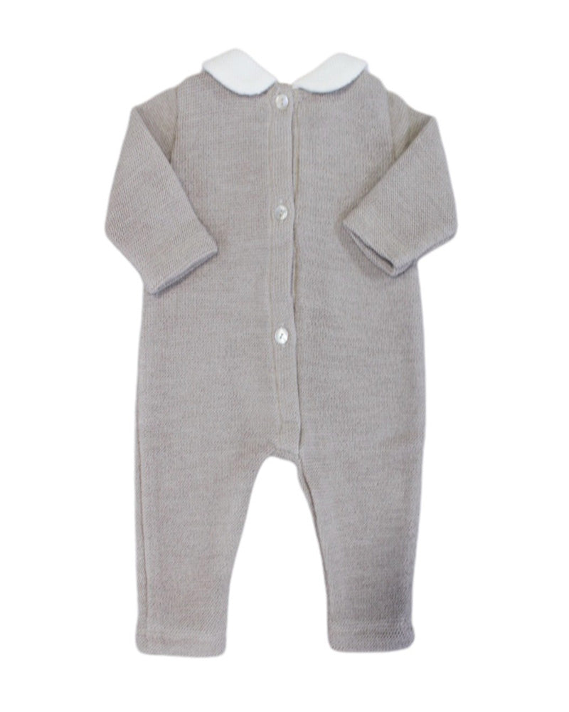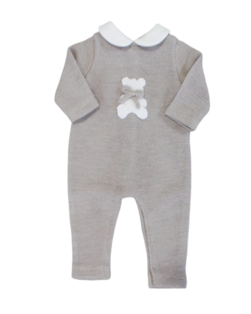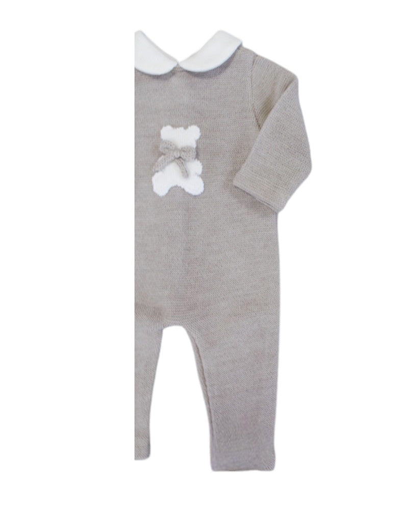 tutina in lana con colletto tondo nido d'api orsetto sul davanti con fiocchetto senza piedini