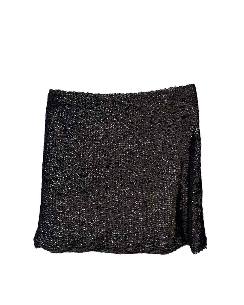 Gonna corta in paillettes, chiusura con zip invisibile sul retro, fodera interna.
