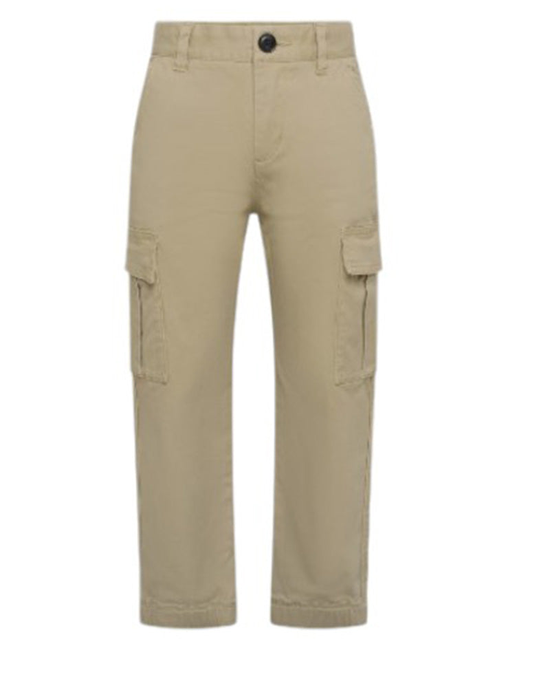 Pantaloni in cotone stretch, tasche sui fianchi, tasche a filetto sul retro, tasche cargo con patta sui lati, chiusura con bottone e zip nascosta, logo SUN68 ricamato sul fianco.