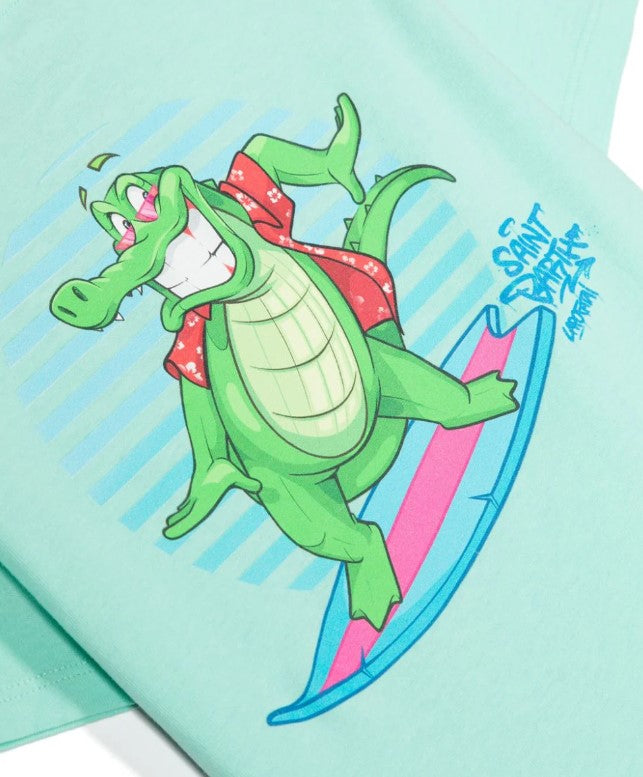 T-shirt da bambino girocollo a manica corta in cotone. Stampa Crocco Surf e logo sul petto, ricamo MC2 Saint Barth sulla manica sinistra.