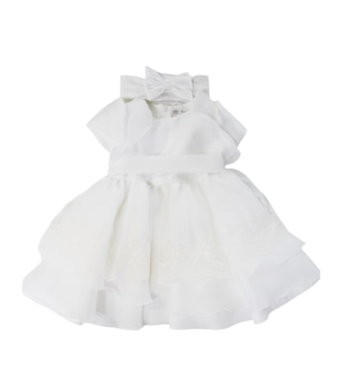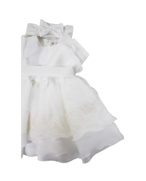 Vestina Teto e Tatta con volant con balza di organza. Modello con fascia abbinata.